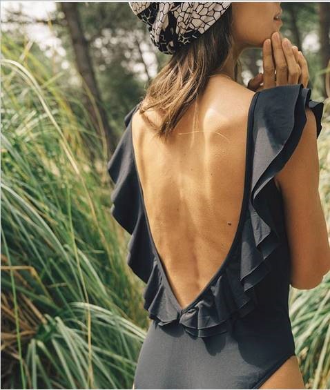 Y, por último, un traje de baño, de Baelle, una joven marca sostenible (Baelle, utiliza principalmente materiales naturales y orgánicos con el objetivo de satisfacer las necesidades de las generaciones actuales, sin dañar recursos futuros) creada por 3 hermanosque seguro que os encanta, yo he fichado este traje de baño negro con volantes, aunque no sé si me gusta más el guinda 😉