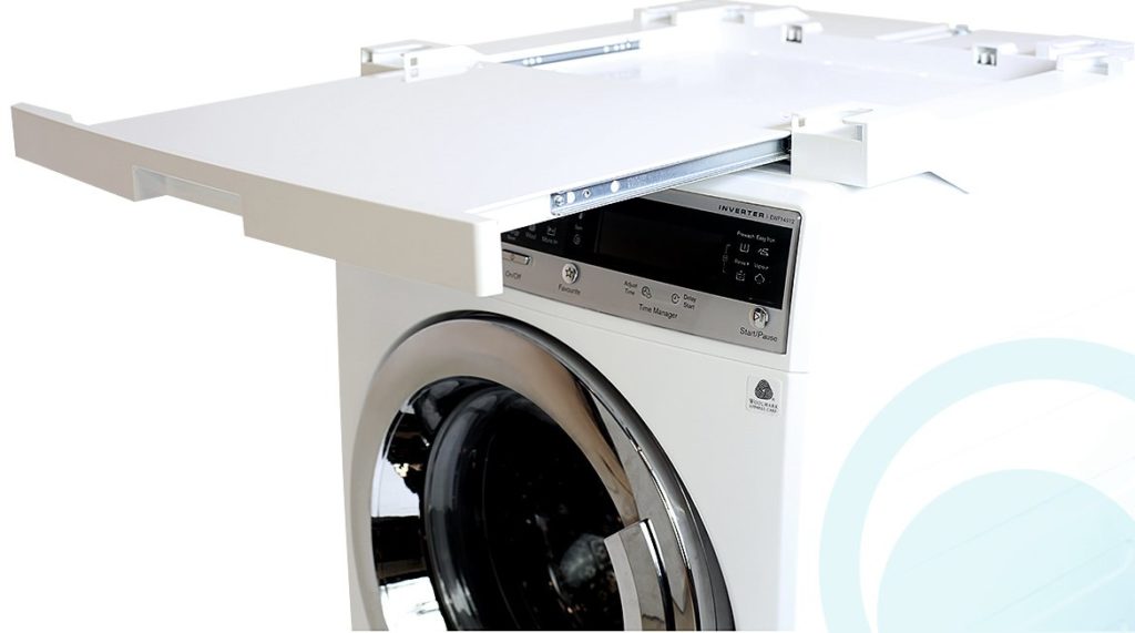 En este caso, dejé un hueco encima de la secadora porque hay un complemento de Electrolux para la lavadora que me encanta, un cajón del que sale una balda para apoyar la ropa que estás sacando.