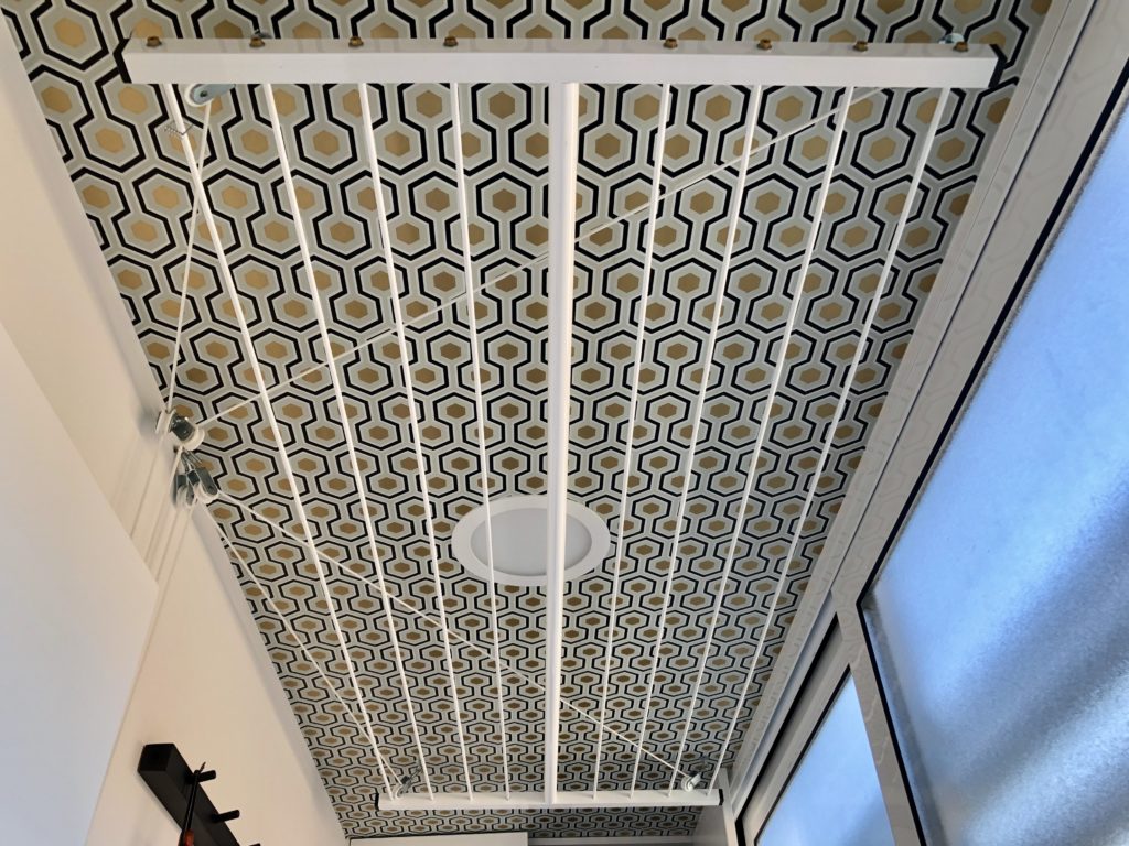 Otra cosa por la que me habéis preguntado mucho en Instagram es el tendedero de techo, lo recomiendo muchísimo porque te lo hacen a medida, vienen a medir a casa y te libera mucho espacio (el nuestro es de Tendederos el Sol) , nosotros ahora con la secadora en invierno apenas lo usamos, pero siempre te viene bien para lo típico que lavas a mano, un trapo que quieres secar, etc…Y ahora en verano nos alivia perfectamente. Aún recuerdo cuando tiré el tendedero de metal este típico que vas moviendo por casa y que acaba medio oxidado…El día que entró por la puerta la secadora el tendedero se fue fuera!