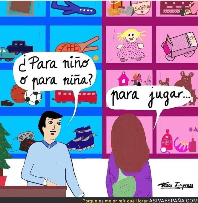 Que a las niñas les gusta más el rosa, se interesan más por jugar con muñecas o princesas y que necesiten menos moverse no es una cuestión de nacimiento es una cuestión de educación, cultural.
