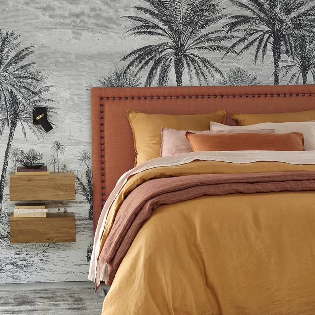 Y cuál es mi sorpresa cuando me encuentro el otro día en una foto de dormitorio de La Redoute el papel pintado selvático en blanco y negro de fondo (el papel parece que no es de la tienda porque no lo he encontrado, parece el de la marca francesa).