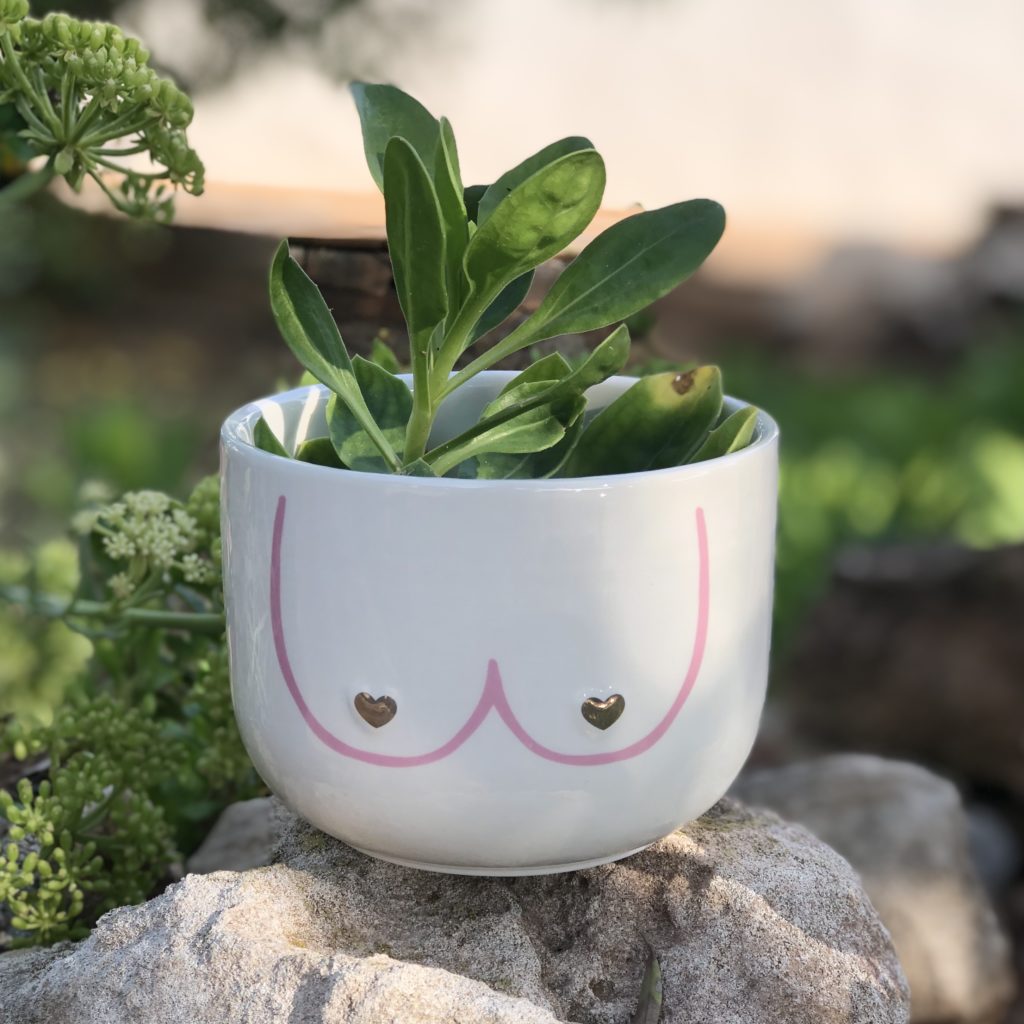 El caso es que desde hacía meses teníamos en la tienda la taza pechos y el bol pechos (o macetero pechos) pero con el boom de «Sacar un pecho fuera» se dispararon las ventas…