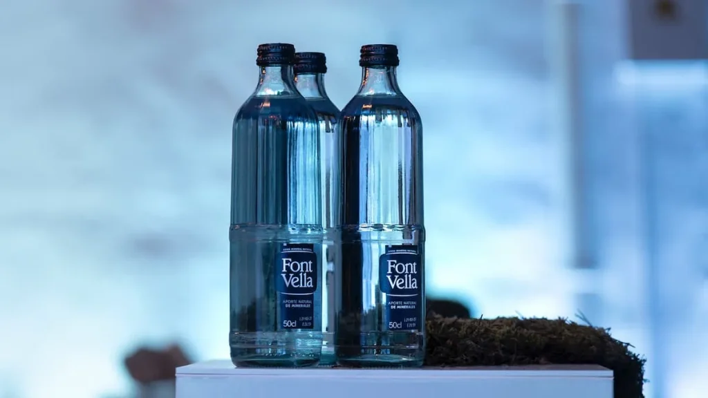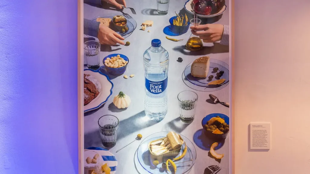 Simulando una botella de cristal, la nueva botella de agua de Fontbella fabricada en plástico pero con un diseño mucho más bonito que el habitual. Resulta que el nuevo diseño se debe a la conmemoración de los 150 años de historia de la marca. Buscando la foto para este post he encontrado que, en la exposición que realizaron para celebrar el aniversario, también contaron con reconocidos artistas para que plasmaran en su obra una botella de la marca.