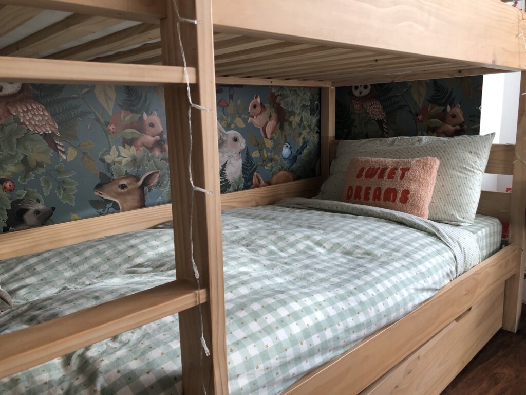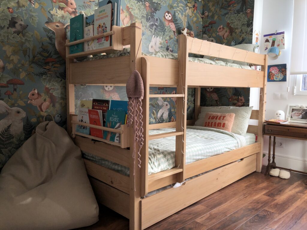 De la cuna pasaron a las camitas extensibles que son muy monas para cuando son pequeños, pero luego no nos cabían extendidas las dos en la misma habitación, así que por practicidad nuestra, y por petición de mis hijos, nos decantamos por las literas.