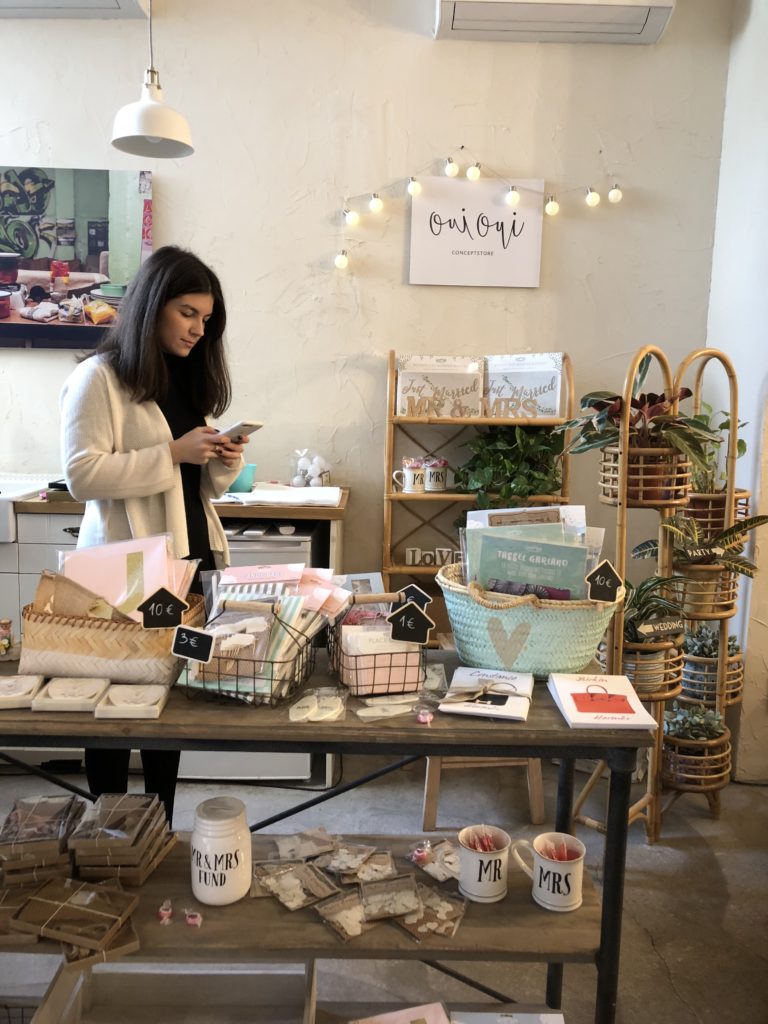 - Diseña un stand bonito y fotografiable, dibújalo si es necesario, para hacerte una idea de si te hará falta algo de atrezzo (una planta, unas chuches, cestas, etc…).Además de los muebles que te faciliten o los que lleves tú.