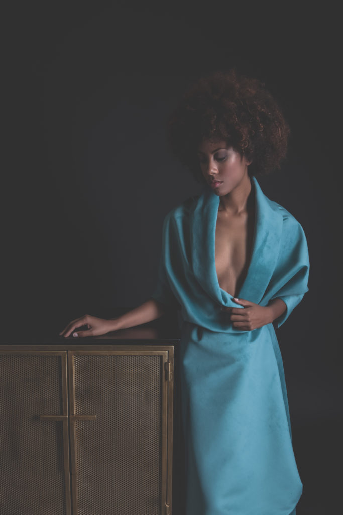 Una editorial en la que puedes apreciar sus muebles (que me encantan, los habreís visto en alguna de mis pop up) pero donde ha puesto el foco en la estética y ha jugado con el color a través de las telas de Federico Antelo y la modelo.