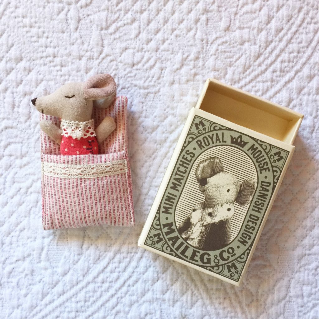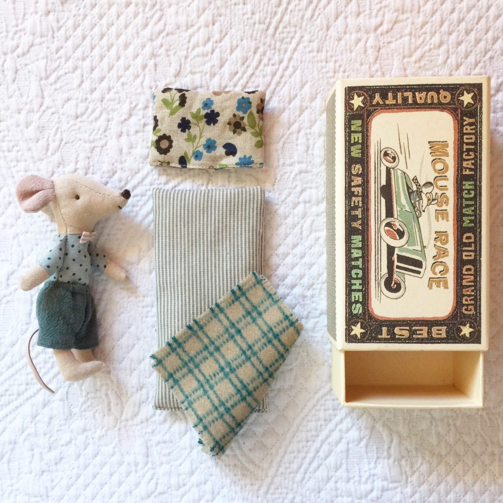 Lo que caracteriza a los ratoncitos de Maileg es su calidad, tanto en las telas como en la confección, así como la dulzura de cada uno de los ratoncitos…Cada uno con vestimentas y telas de cama diferentes, cai todos con su cama – cajita de cerillas, este año mis preferidos son el ratoncito bebé en caja de cerillas extra plana y el ratoncito hermano mayor con pajarita.