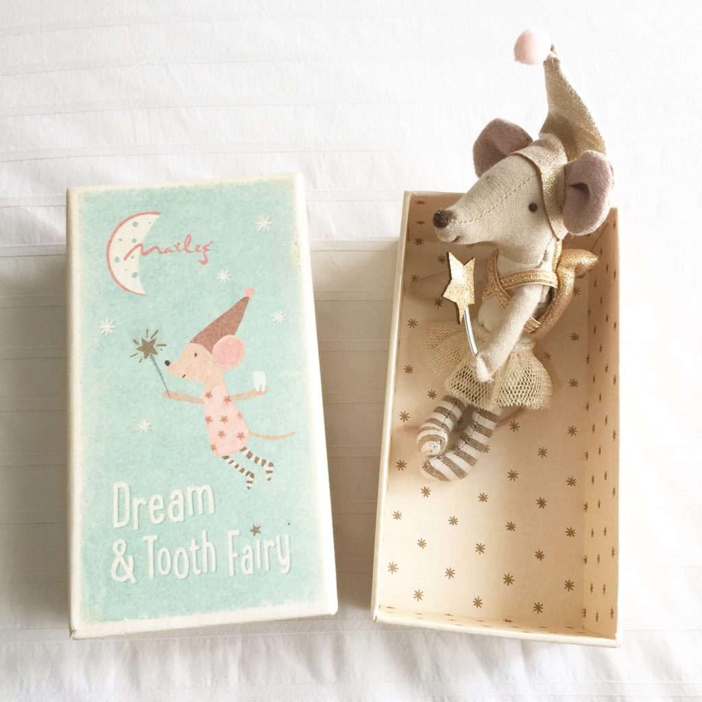 Los ratoncitos de Maileg han acompañado nuestras puertas del ratoncito Pérez casi desde el principio, y lo cierto es que les he ido cogiendo cariño con el tiempo. Al principio sólo eran unos ratoncitos de tela monísimos, que venían en su cajita de cerillas con colchoncito y mantita (y que me daban bastantes quebraderos de cabeza porque dos veces al año cambiaban de ropa y tenía que hacer fotos nuevas), pero se han convertido en parte de la familia Oui Oui, junto a las cajitas para dientes que son un auténtico must (y que me chifla la nueva en color dorado) además de que he podido constatar lo especiales que son tanto para niños como para mayores.