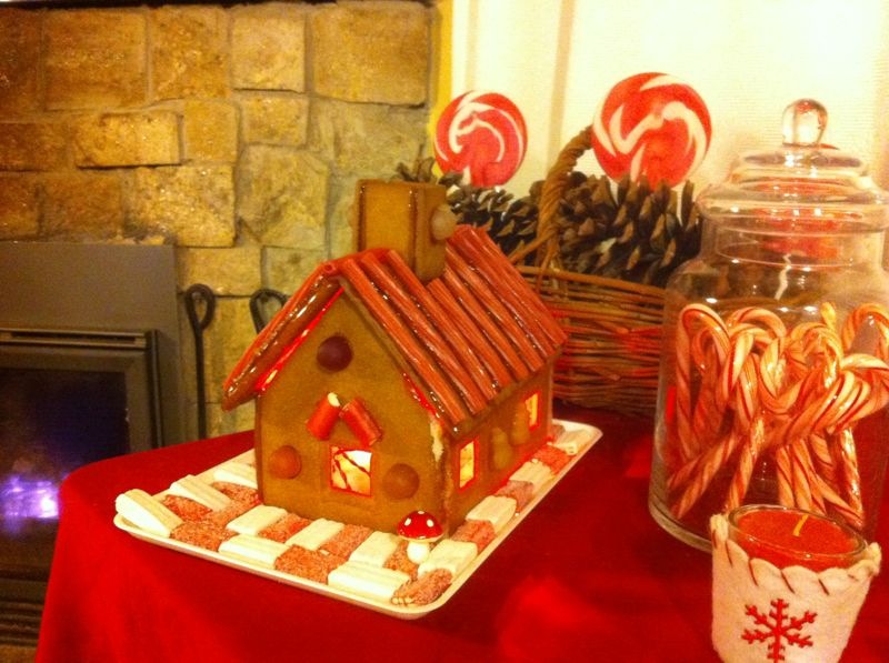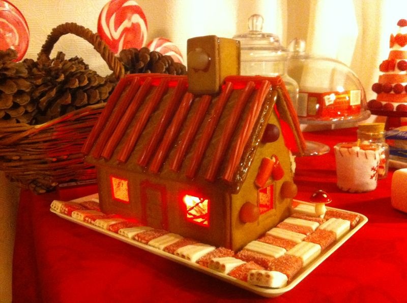 Después montamos la casita de galletas de jengibre de Ikea, la decoramos también con chuches y hasta le pusimos luz interior!