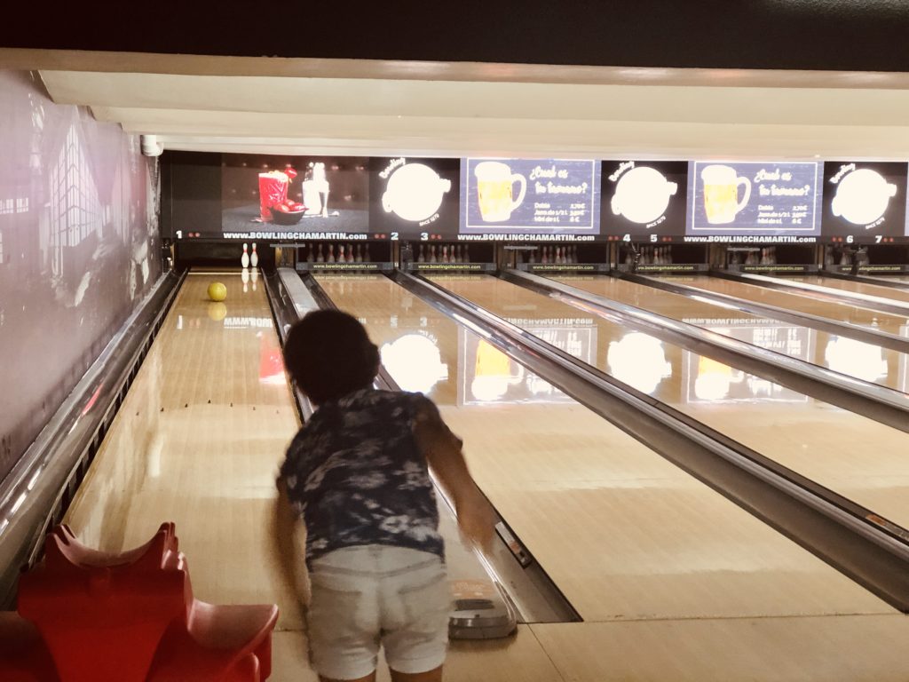Si os apetece el plan de jugar a los bolos con los niños os cuento mis recomendaciones: en la Estación de Chamartín está Bowling Chamartín que es donde nosotros vamos, puedes reservar la hora por la web y así te aseguras que haya sitio (nosotros cogemos dos partidas, creo que es lo apropiado para niños pequeños, después de la primera siempre quieren otra y con dos es suficiente, si son más mayores igual si cogería tres). Allí puedes picar algo mientras juegas o quedarte a comer/cenar en la zona de restaurante y si dejáis el coche en el parking no olvidéis pedir que os sellen el ticket que sale más barato 😉