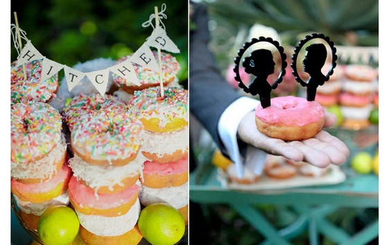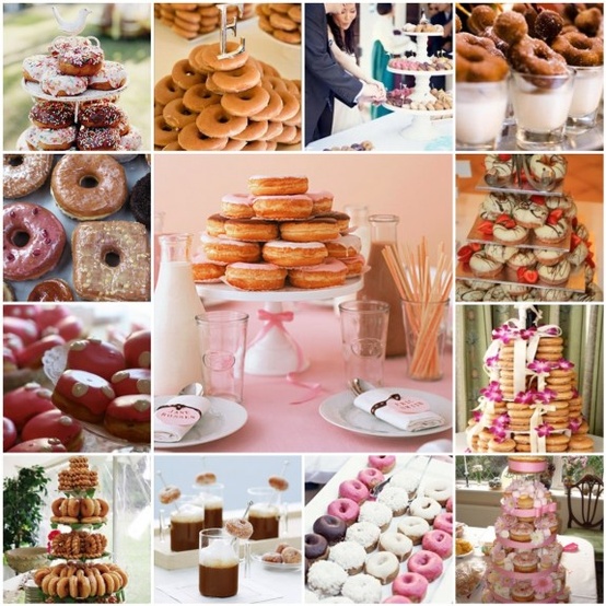Una barra de donuts y donetes es muy económica y puede resultar muy vistosa si combinas colores.