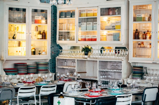 Pharmacia: el restaurante anexo al Museo de la Farmacia, decorado con objetos médicos y de farmacia (la hielera es un carrito de enfermería antiguo, la botella de agua parece una botella de medicina de esas marrones, la cuenta te la traen en un bote de muestra de orina…Y los cocktails tienen nombres de medicamentos), merece la pena, tanto por la decoración como por la comida y, si el tiempo lo permite, por su terraza con vistas. Rua Mal. Saldanha, 1.